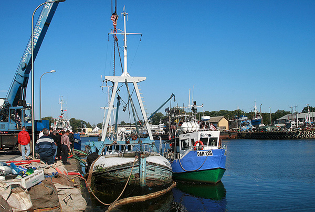 Zatopiony blisko dwa lata temu kuter rybacki DAR - 53 został wydobyty z dna 9 września 2010 r.