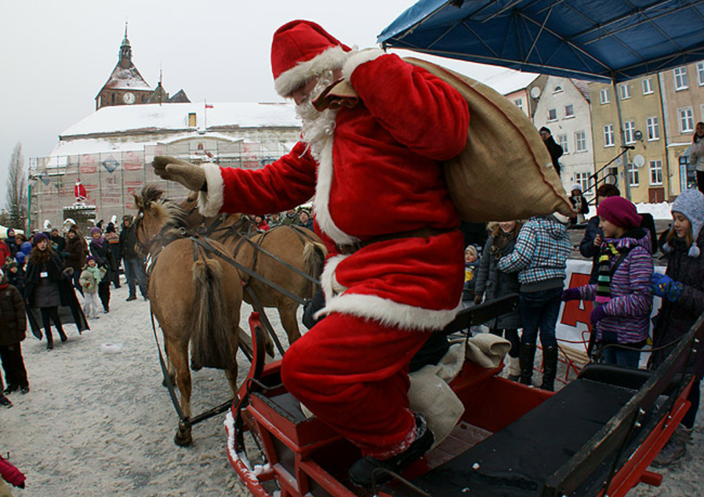 W połowie kiermaszu pod scenę przybył entuzjastycznie witany przez dzieci i elfów Św. Mikołaj z Rovaniemi w Laponii. Pod ratusz dotarł wspaniałymi saniami. Zmęczone przedzieraniem się przez zaspy renifery zawróciły do Laponii, a w Polsce zastąpiły ich konie. Szacowny gość z Laponii rozdawał dzieciom z wielkiego wora przywiezione upominki. Następnie kolejno występowały na scenie: tercet w składzie Patrycja Szafraniec, Patrycja Szymczewska i Marta Grobelna z repertuarem Natalii Kukulskiej, grupy dziecięce z Przedszkoli Nr 1,2 i 3. Po nich koncertowała młodzież z Zespołu Szkół Morskich. Osobno prezentowało swoje niedoścignione umiejętności muzyczne „Świąteczne Reggae Studio".
