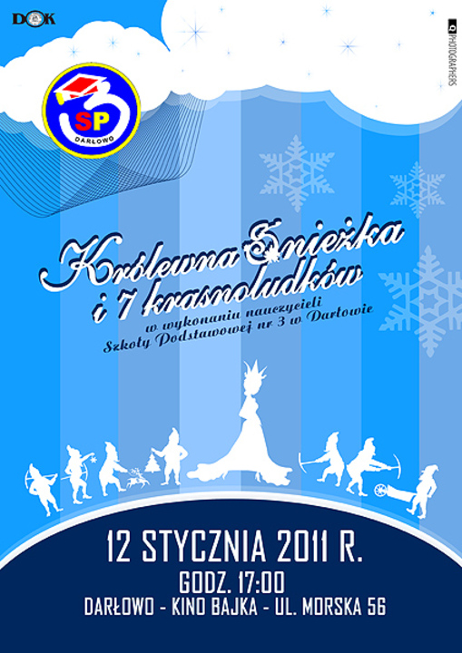 Już w najbliższą środę tj. 12 stycznia 2011 o godzinie 17:00 na deskach darłowskiego Kina Bajka debiut nauczycieli Szkoły Podstawowej Nr 3 w Darłowie w spektaklu teatralnym pt.: „Królewna Śnieżka i 7 Krasnoludków".