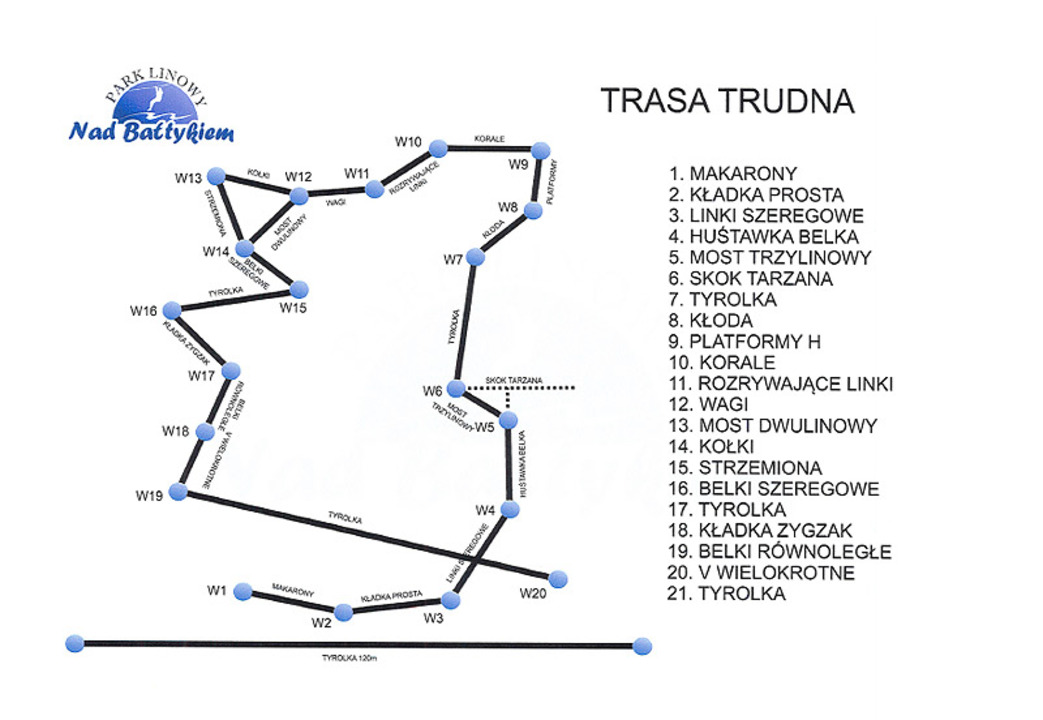 Jak nas poinformował przedstawiciel Parku, prace nad budową nowej atrakcji Darłowa dobiegają końca. Wyznaczono trasy: dziecięcą, średnią i trudną przy czym, każdy przed rozpoczęciem zjazdu będzie zobowiązany do sprawdzenia własnych możliwości na trasie treningowej, która jest szlakiem obowiązkowym. Skok indiański, tyrolka i most dwulinowy stanowią dystans, który pozwoli nam sprawdzić własną kondycję, możliwości i predyspozycje fizyczne.
