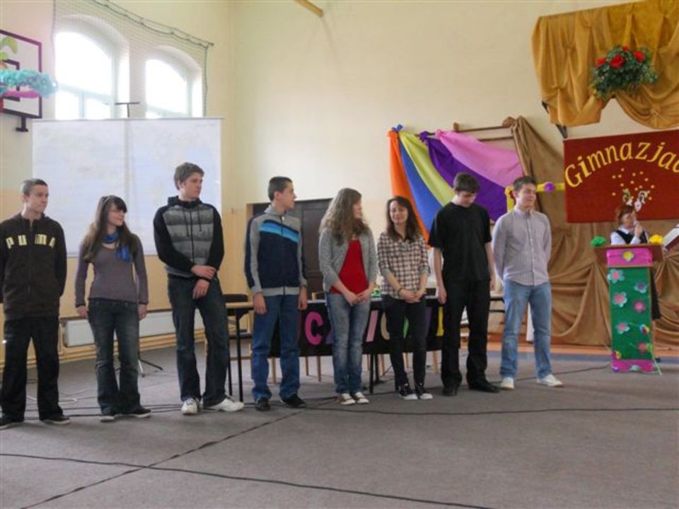 Po zakończeniu tej części apelu aktyw Samorządu Uczniowskiego, pod nadzorem opiekuna S.U. Pani Krystyny Leśniewskiej, zorganizował „Gimnazjadę" - zabawę opartą na zasadach znanego programu telewizyjnego emitowanego na kanale TVP 2 - „Familiady".