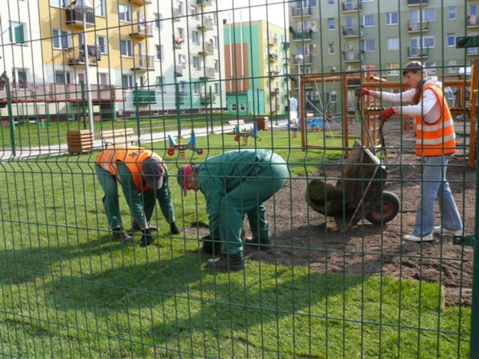 Jeszcze tylko pracownicy MPGK zakończą kłaść trawę z rolki i już będzie można korzystać z placu rekreacyjnego zbudowanego pomiędzy blokami na zapleczu ulicy Wieniawskiego.