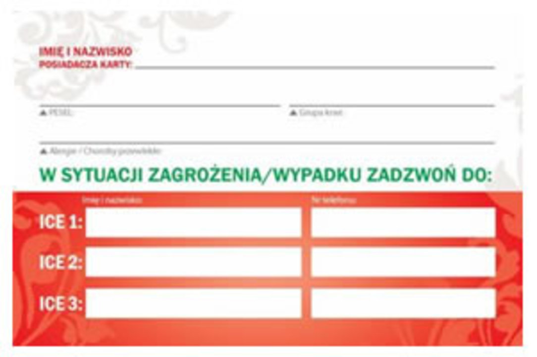 Kartę ICE powinien mieć każdy z nas! Ty; Twoje dziecko Twoi rodzice i dziadkowie; Twoi współpracownicy, podwładni i przełożeni oraz nosić ją zawsze przy sobie!