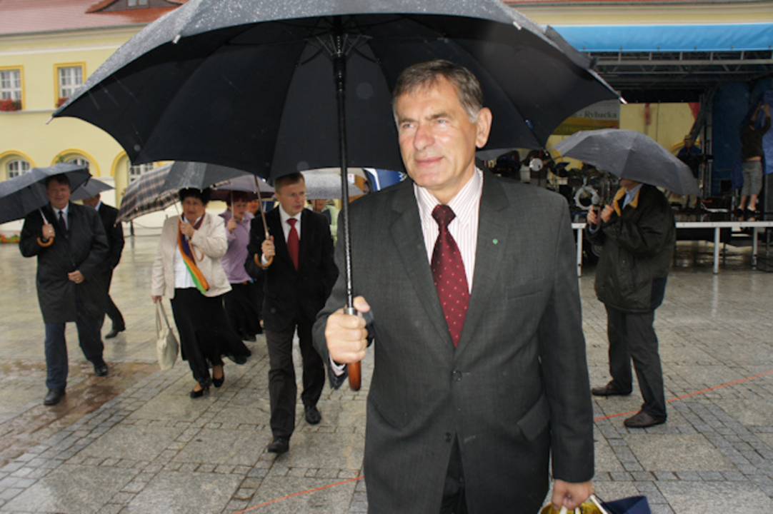 Pomimo deszczowej aury w Darłowie na rynku miejskim przed ratuszem o godzinie 11:00 rozpoczął się dwudniowy Jarmark, w ramach którego odbywa się: