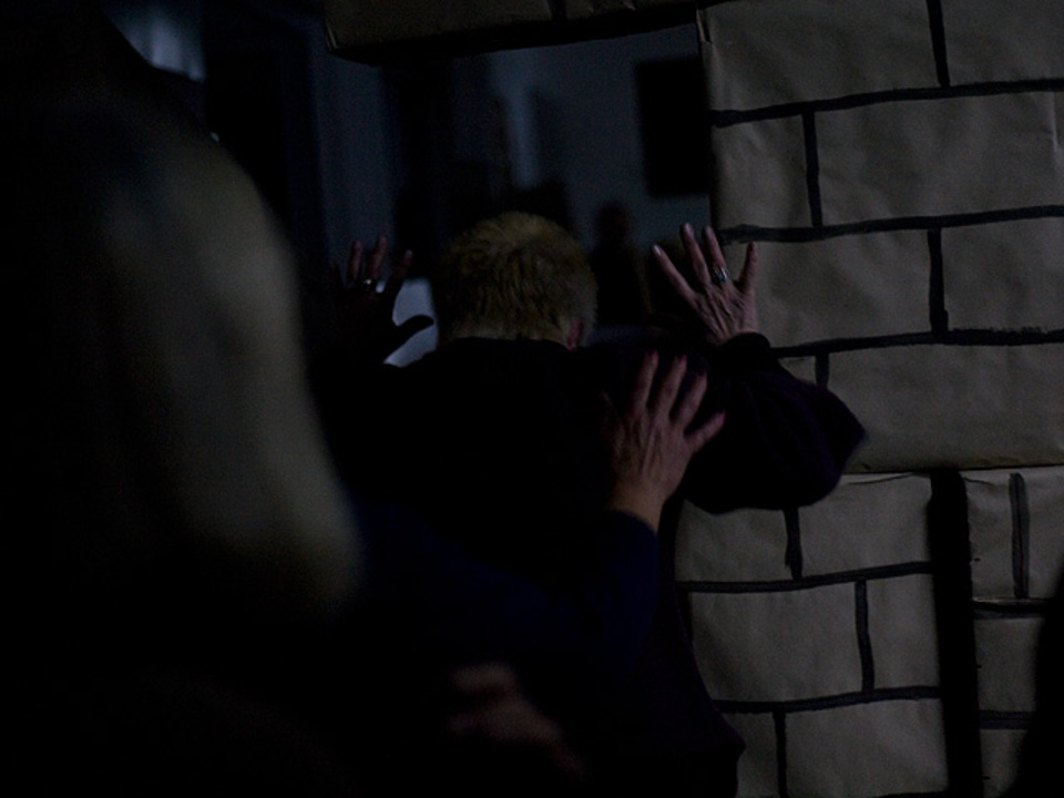 Niespodzianką wydarzenia było symboliczne obalenie muru, którego dokonali wspólnie - przybyli.