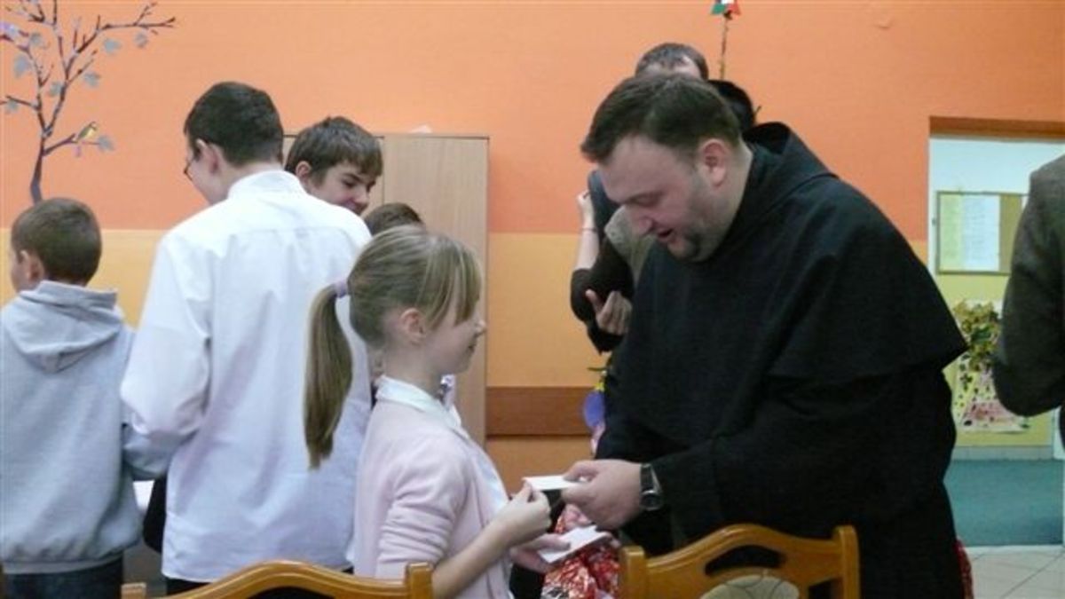 Na początku wigilii Franciszkanin o. Sebastian odczytał fragment ewangelii i przypomniał o Narodzeniu Chrystusa w Betlejemskiej Grocie Pasterzy. Zgodnie z polskim zwyczajem wigilijnym wszyscy łamali się opłatkiem i składali życzenia. Potem śpiewano kolędy i pastorałki przy akompaniamencie Dominiki Lesner i jej gitary. W wigilii oprócz dzieci udział wzięli: Zbigniew Mielczarski - kierownik referatu oświaty i pomocy społecznej w Urzędzie Miejskim, Maria Szafraniec zastępca kierownika Miejskiego Ośrodka Pomocy Społecznej, Arkadiusz Płóciennik - kierownik świetlicy „Bezpieczna Przystań" oraz wychowawcy. Takie spotkania wigilijne dla dzieci organizujemy od kilku lat wyjaśnił Arkadiusz Płóciennik i dodał to już tradycja.