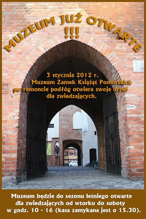 3 stycznia 2012 roku Muzeum Zamek Książąt Pomorskich w Darłowie po remoncie podłóg otwiera swoje drzwi dla zwiedzających.