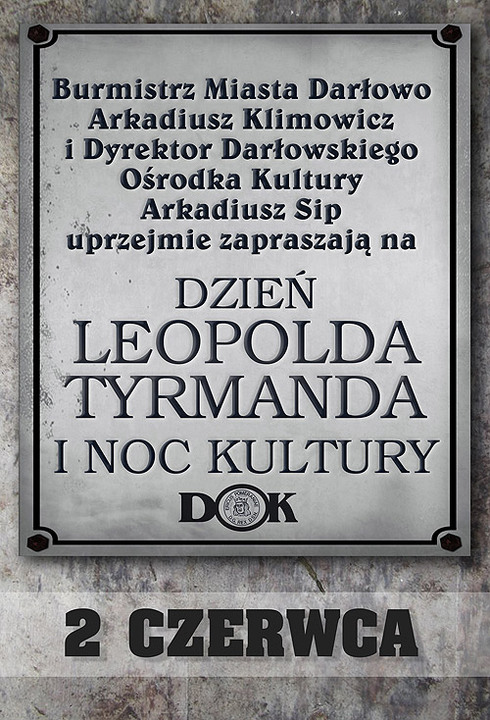 Burmistrz Darłowa Arkadiusz Klimowicz i Dyrektor Darłowskiego Ośrodka Kultury Arkadiusz Sip serdecznie zapraszają na: Dzień Leopolda Tyrmanda i Noc Kultury - 2 czerwca 2012 - Darłowo.