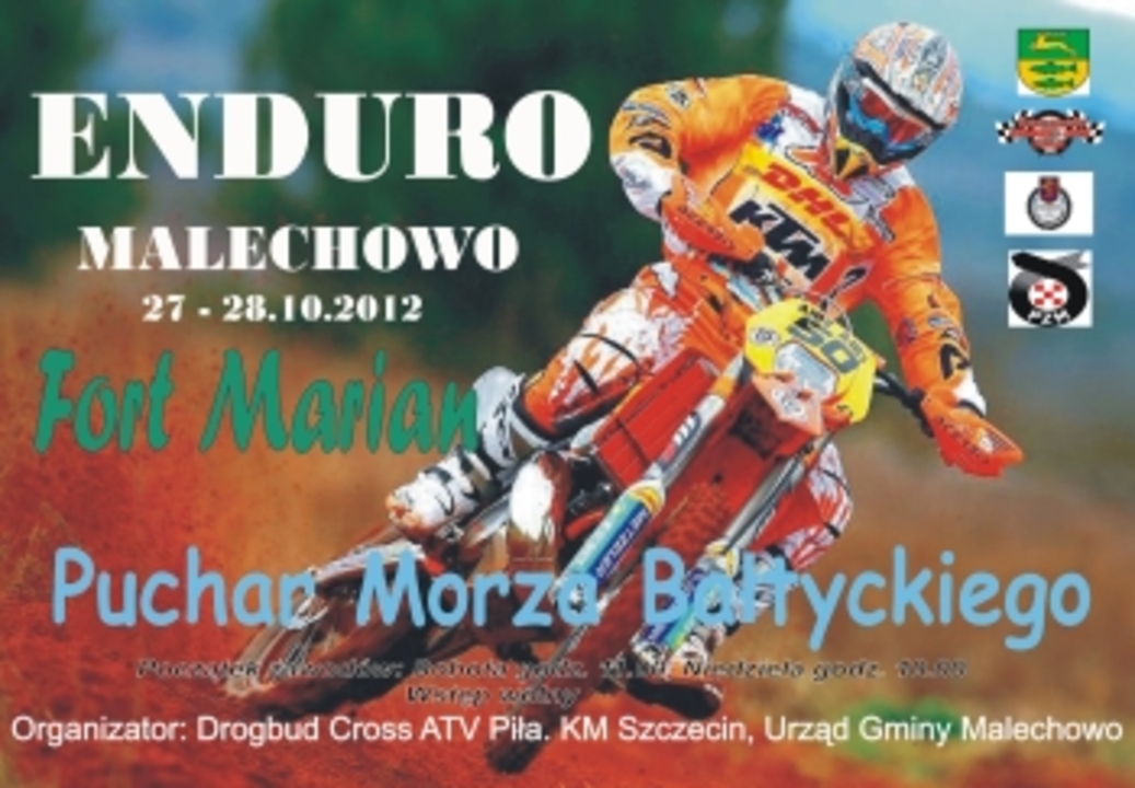 Drogbud Cross ATV Piła serdecznie zaprasza na imprezę motocyklową pn.: Puchar Morza Bałtyckiego w Rajdach Enduro, która odbędzie się w dniach 27-28 października 2012 roku w Forcie Marian w Malechowie. Organizatorami niniejszego wydarzenia są: ATV Piła, KM Szczecin oraz Urząd Gminy w Malechowie. Zawody odbywać się będą :