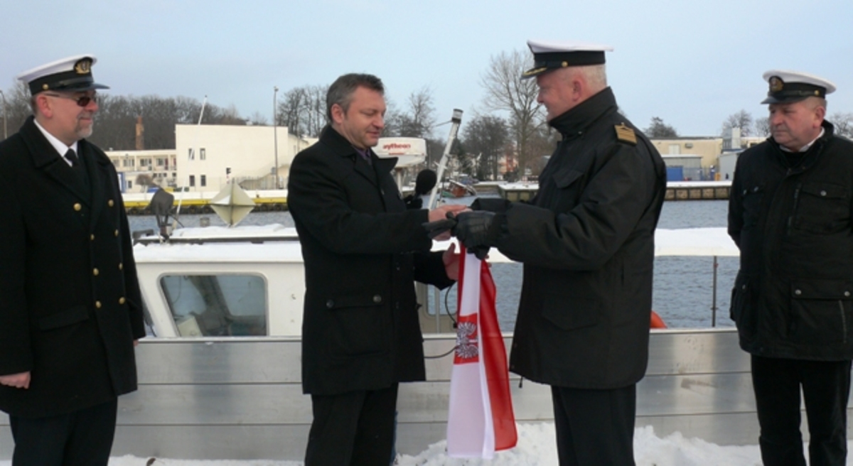 Urząd Morski w Słupsku 6 grudnia przy Nabrzeżu Warsztatowym w porcie Darłowo przekazał nieodpłatnie poprzez starostę sławieńskiego Zespołowi Szkół Morskich łódź motorową Hydrograf -31.
