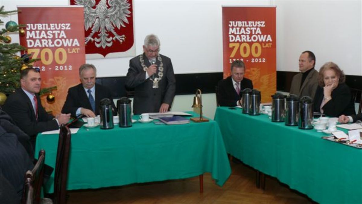 Tuż po otwarciu sesji RM Franciszek Kupracz-wójt gminy Darłowo podziękował Arkadiuszowi Klimowiczowi za owocną współpracę w roku 2012 i życzył radnym i wszystkim mieszkańcom Darłowa pomyślnego Nowego Roku. Po nim zabrał głos przedstawiciel Wojewódzkiej Komendy Uzupełnień ppłk Hryckowian, który uhonorował małżeństwo Ireny i Tadeusza Ciechanowskich Złotymi Medalami za Zasługi w Obronności Kraju oraz Wiesławę Krawczyk Srebrnym Medalem nadanym przez MON.