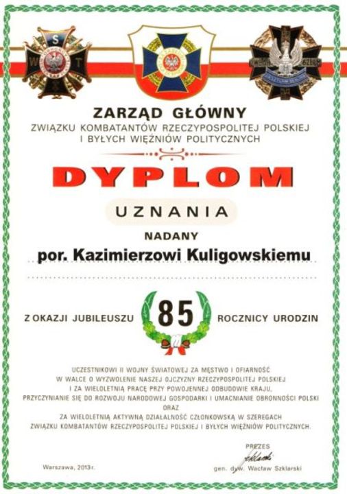 Wszystkich przybyłych serdecznie powitał Kazimierz Kuligowski przewodniczący Miejsko –Gminnego zarządu ZKRP i BWP. Tradycją tych spotkań stało się uroczyste wręczenie jubileuszowych dyplomów wystawionych przez zarząd główny Związku Kombatantów RP z podpisem gen. dyw. Wacława Szklarskiego. W tym roku włodarz Darłowa uhonorował jubilatów dodatkowo specjalnymi medalami wybitymi na okoliczność siedemsetlecia drugiej lokacji miasta Darłowo.