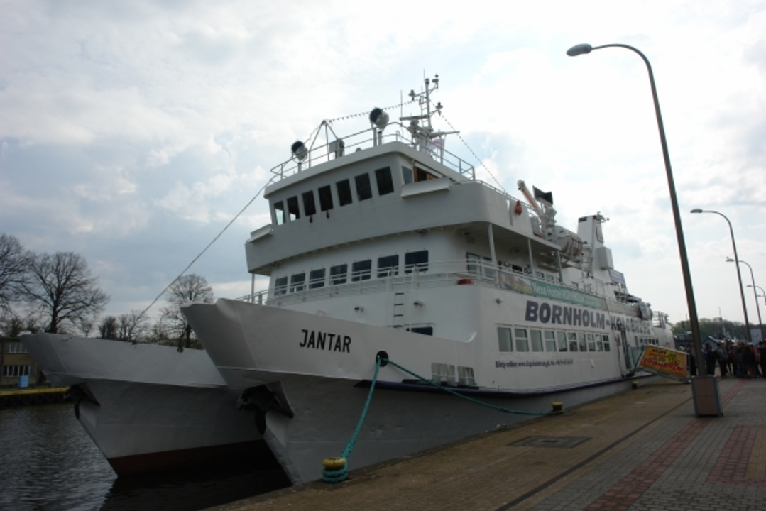 Po inauguracyjnym rejsie na Bornholm (8 maja b.r) we czwartek na pokładzie Katamaranu m/s Jantar odbyły się Dni Otwarte. Były one doskonałą okazją do szczegółowego zapoznania się z ofertą turystyczną Kołobrzeskiej Żeglugi Pasażerskiej, a także do szerszego poznania założeń projektu INTERFACE PLUS, dotyczącego budowy terminalu pasażerskiego w porcie w Darłowie.