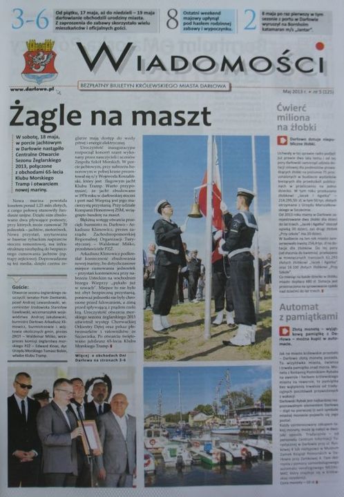 Od dzisiaj można już nabyć bezpłatny, majowy numer Wiadomości Darłowskich. W numerze między innymi: 'Żagle na maszt', 'Ćwierć miliona na żłobki', 'Automat z pamiątkami', 'Bornholm - Majorka Północy', '701 urodziny Darłowa', 'Lekka strona miasta', 'Nowa Świadomość', 'Sezonowa strefa parkowania' i wiele innych godnych uwagi artykułów.