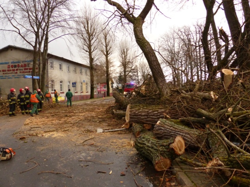 Bardzo silny wiatr powalił, a niektóre wyrwał z korzeniami łącznie blisko setkę drzew położonych przy ulicach: Morskiej, J. Conrada, Zwycięstwa, Słowiańskiej. Ponadto przewrócił lampę solarną na parkingu, zniszczyl wiele reklam uszkodził budynek mieszkalny przy ul. Chińskiej, dach kościoła Mariackiego i pozrzucał wiele dachówek, w tym także z Ratusza i Zespołu Szkól im S. Żeromskiego. Darłowska Straż Pożarna pocięła i usunęła wiele drzew blokujących dojazd do Darłówka wschodniego zarówno od strony ulicy Morskiej jak i Słowiańskiej. Pełne ręce roboty mają również służby Miejskiego Przedsiębiorstwa Gospodarki Komunalnej przy usuwaniu szkód.