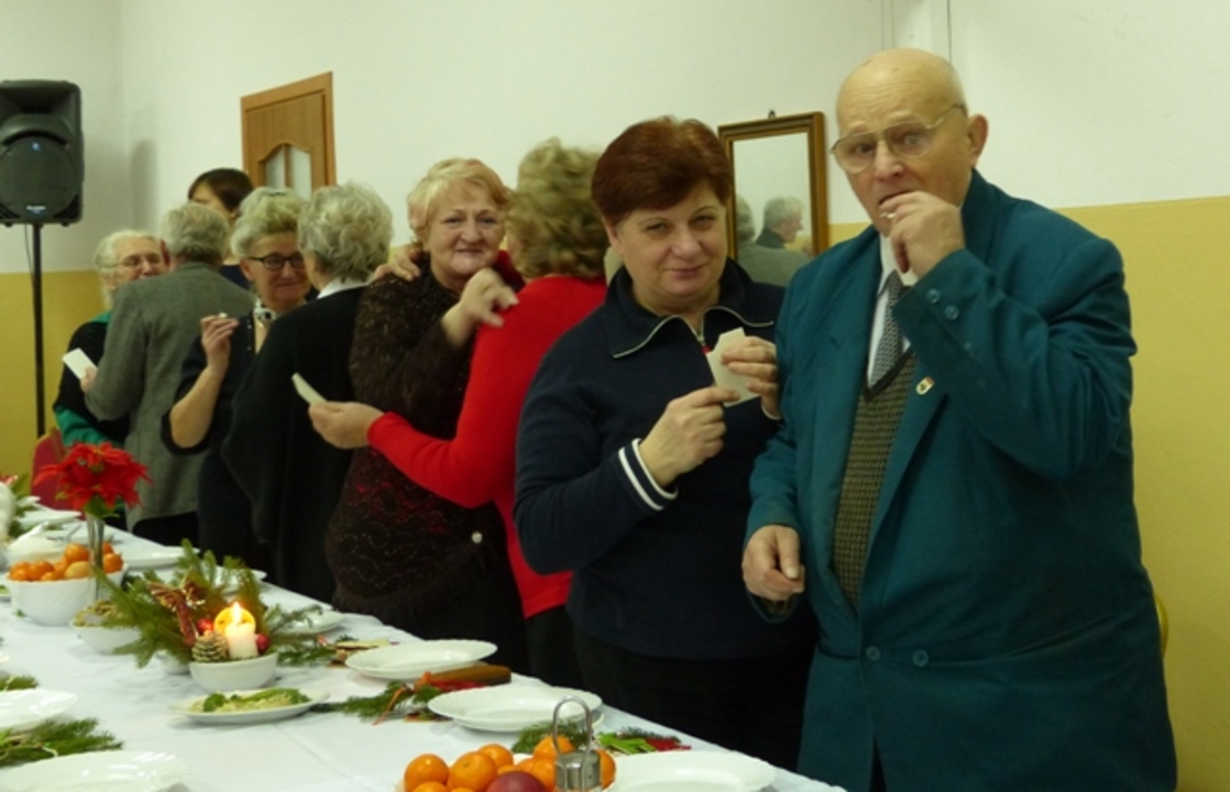 Przy wspólnym świątecznym stole zasiedli członkowie grupy wsparcia „Niezapominajka” i Stowarzyszenia Na Rzecz Osób Zagrożonych Wykluczeniem Społecznym o nazwie „Otwarte Drzwi”. Obie te działające przy MOPS-ie organizacje skupiają część osób niepełnosprawnych i część osób starszych z terenu miasta Darłowa i zajmują się rozwijaniem oraz propagowaniem postaw, inicjatyw i działań zmniejszających zagrożenie wykluczenia społecznego. W spotkaniu uczestniczyli m.in.: Waldemar Wieczorek - kierownik MOPS, Zbigniew Mielczarski – kierownik referatu oświaty i spraw społecznych w UM, proboszcz Parafii Św. Gertrudy – Eugeniusz Gnibba, wikariusz klasztoru Franciszkanów o Stefan Malandy, Arkadiusz Sip – dyrektor DOK im. L. Tyrmanda, prezes PZERiI i stowarzyszenia „Otwarte Drzwi” Danuta Puczyńska.