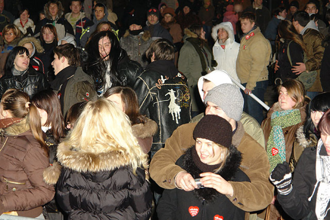 W tym roku kwestę na Wielką Orkiestrę Świątecznej Pomocy w Darłowie zorganizowały trzy sztaby WOŚP. Dwa jak zwykle miały swą siedzibę w Miejskim Gimnazjum. Kierowali nimi Janusz i Edyta Resil z Zespołu Szkół im. S. Żeromskiego oraz Mariusz Pokomeda i Artur Hamerling z Miejskiego Gimnazjum im. S. Dulewicza. Trzecim utworzonym po raz pierwszy w Zespole Szkół w Darłówku kierował Mieczysław Czapla. Wszystkie sztaby korzystały ze 180 wolontariuszy. Nosili oni identyfikatory ze zdjęciem i serdecznym uśmiechem zachęcali przechodniów do wrzucania datków do puszek. W zamian przekazywali podziękowanie w postaci czerwonego serduszka. Od rana kwestowano w Darłowie i Darłówku. Scenę na której odbywały się występy i przeprowadzano licytacje rozstawiono na rynku przy fontannie z Rybakiem. Kolejno występowali na niej: Chór żeński z Miejskiego Gimnazjum pod kierunkiem Krystyny Leśniewskiej, śpiewał i grał na gitarze Dariusz Kos, zespół rockowy z ZSM „Great Mint”, grupa rockowa z LO - „UZURPA”, Hot – Dance i Andrzej Sztaba. Okazale wypadło „Światełko do nieba”, a właściwie pokaz fajerwerków. Prześlicznie wyglądało gorejące serduszko wysyłające świecące promienie. O godz. 20 wystąpił nagrodzony przez burmistrza zespół „Świadomość” grający muzykę reggae. Oklaskiwało go kilkuset fanów. Z licytacji fantów i gadżetów takich jak np.: koszulki, serduszka, plecaki, kubki, kalendarze przesłane ze sztabu WÓŚP oraz darów mieszkańców jak np.: hełm, amerykański kombinezon wojskowy, statek z ości, koło sterowe, obrazy olejne i malowane na szkle zebrano kwotę 2000 zł. Furorę zrobiło 521 serduszek uszytych na XVI Finał WOŚP przez dzieci z Zespołu Szkół w Darłówku, które były rozchwytywane w czasie licytacji. Nie można jeszcze dokładnie określić wielkości zebranych kwot przez poszczególne sztaby, ponieważ pieniądze liczone są przez bank. Ze zrobionego szacunku wynika jednak, że darłowianie byli hojniejsi aniżeli rok temu, kiedy to zebrano 14 tys. zł. Podliczył się jedynie sztab Mieczysława Czapli, który zebrał z kwesty i licytacji ponad 7 tys. zł. Zebrane pieniądze będą przeznaczone na zakup aparatury niezbędnej do leczenia dzieci ze schorzeniami laryngologicznymi.LW