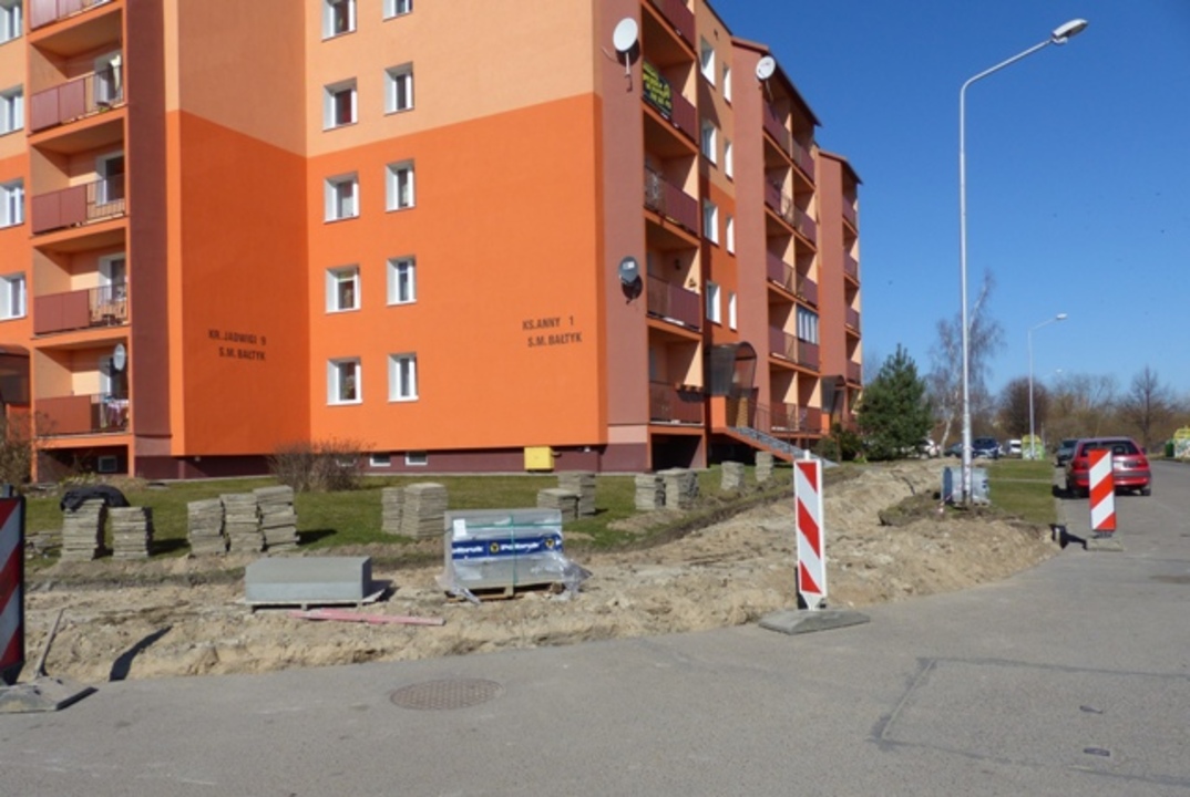 W Darłowie trwa rozbieranie starego i budowa nowego chodnika z kostki betonowej o powierzchni 320 metrów kw. przy ulicy księżnej Anny.