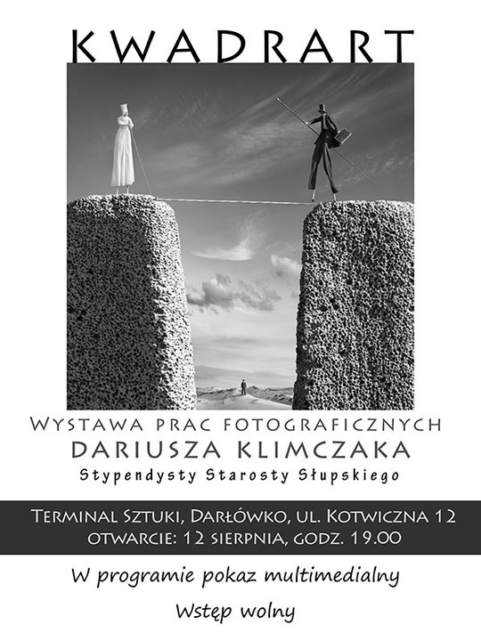 Dziś o godzinie 19:00 w Terminalu Sztuki w Darłówku Zachodnim odbędzie się wernisaż fotograficzny Dariusza Klimczaka - stypendysty Starosty Słupskiego KWADRART. Niebanalne, kreatywne prace tego artysty przykuwają nie tylko wzrok odbiorcy. Zatrzymują na dłużej, zmuszają do przemyśleń, zapadają w pamięci.