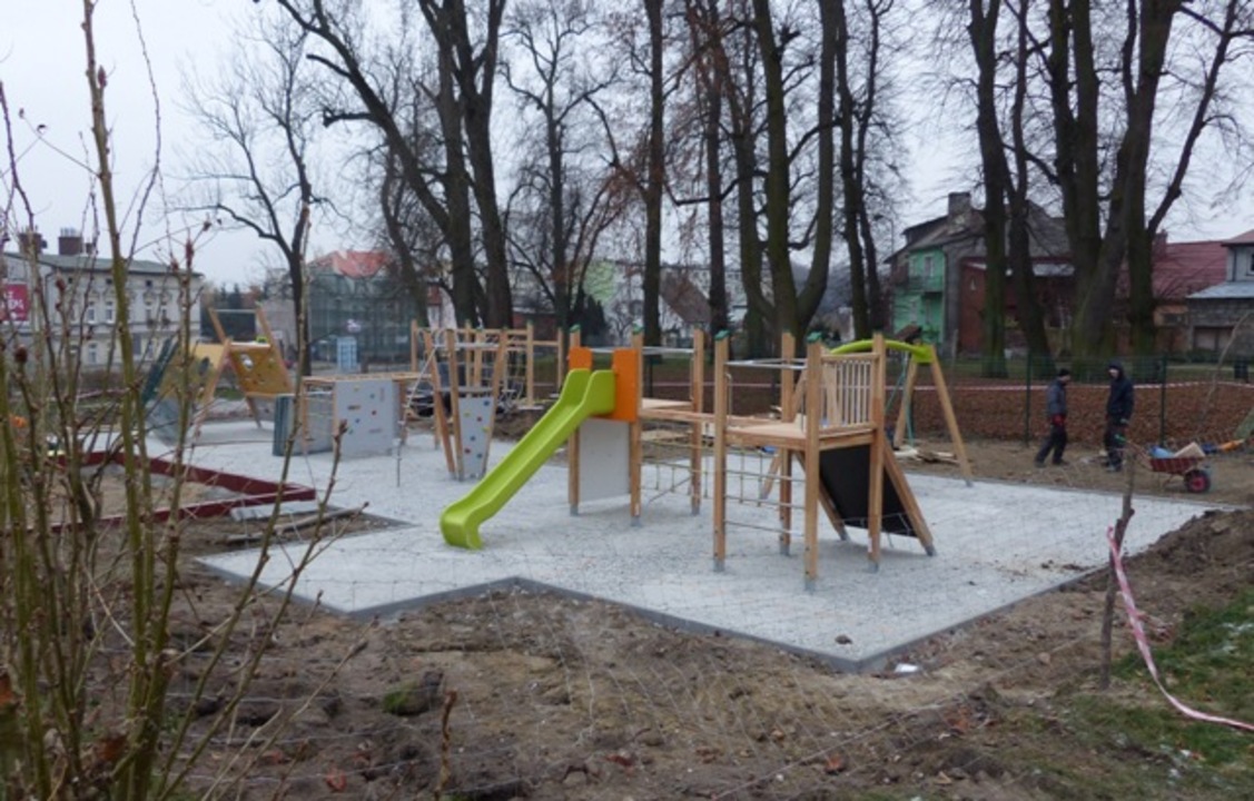 Również budowa placu zabaw w parku obok siedziby Darłowskiej Lokalnej Grupy Rybackiej przebiega zgodnie z planem. Montuje się już niektóre urządzenia zabawowe.