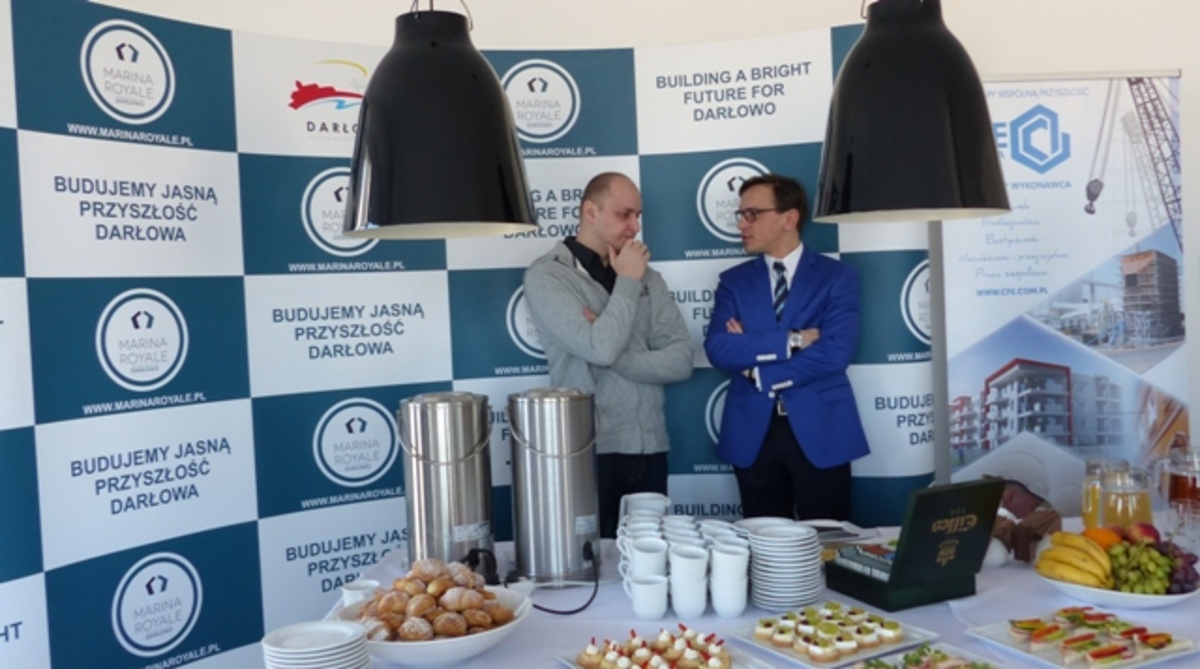 Z udziałem starosty sławieńskiego Wojciecha Wiśniowskiego i burmistrza Darłowa Arkadiusza Klimowicza w siedzibie belgijskiej firmy POC Partners i jej polskiej spółki w Darłówku Zachodnim podpisano umowę na wybudowanie pierwszego z trzech zaplanowanych budynków z apartamentami. Przybyłych powitał Wojciech Konferowicz, który zaprezentował firmę i jej plany związane z Darłowem na najbliższe kilka lat. Firma zakłada wybudowanie w trzech zazębiających się etapach 300 luksusowych apartamentów w trzech budynkach. Powstaną one na 1,5 hektarowej działce nad samym morzem w Darłówku Zach., nadmorskiej dzielnicy Darłowa. Pierwszy ze wznoszonych siedmiokondygnacyjny budynek będzie miał 68 apartamentów o powierzchni od 27 do 84 metrów kw. w cenie od 12 do 24 tys. za metr kw. netto. Każdy apartament będzie miał, co najmniej jeden balkon i miejsce do parkowania w dwukondygnacyjnym podziemnym garażu z windami samochodowymi. Na dzisiejszej konferencji prasowej w Darłówku firma POC Partners Polska oficjalnie zainaugurowała budowę kompleksu Marina Royale Darłowo położonej w super atrakcyjnym miejscu u wejścia do portu. W skład kompleksu Mariny Royale wejdą: duża restauracja, basen, SPA, parking podziemny, sklepy, butiki, kawiarnie, promenada spacerowa oraz nabrzeża do cumowania jachtów morskich o zanurzeniu do 3,5 metra. Marina Royale została zaprojektowana przez pracownię architektoniczną Arcas Europe, specjalizującą się w projektowaniu zabudowy mieszkaniowej i wypoczynkowej. Projekt nawiązuje swoim charakterem do przedwojennych nadmorskich kamienic i klimatu riwiery. Zależy nam na tym, by wszystko, co zbudujemy, było najwyższej jakości, by tworzyło nowy standard podkreślał dyrektor Peter Taffeiren. POC Partners Polska Spółka z o.o. zamierza zainwestować w Darłowie 200 milionów złotych. Na czas sezonu letniego roboty budowlane będą wstrzymane, aby nie zakłócać wypoczynku wczasowiczom i turystom. Na rozpoczęcie budowy Arkadiusz Klimowicz burmistrz Darłowa przekazał na ręce Petera Taffeirena -dyrektora generalnego firmy POC Partners kielnię z herbem Darłowa i list gratulacyjny.