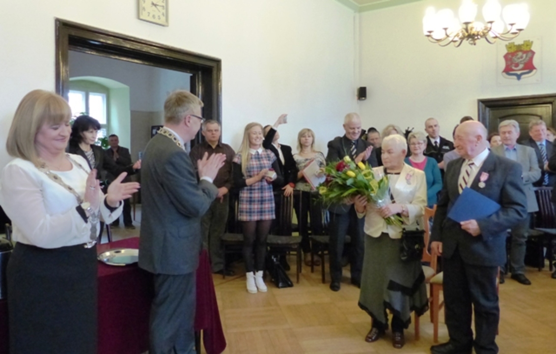 W imieniu Prezydenta RP Bronisława Komorowskiego Arkadiusz Klimowicz burmistrz Darłowa uhonorował Medalami za Długoletnie Pożycie Małżeńskie parę jubilatów z naszego miasta.