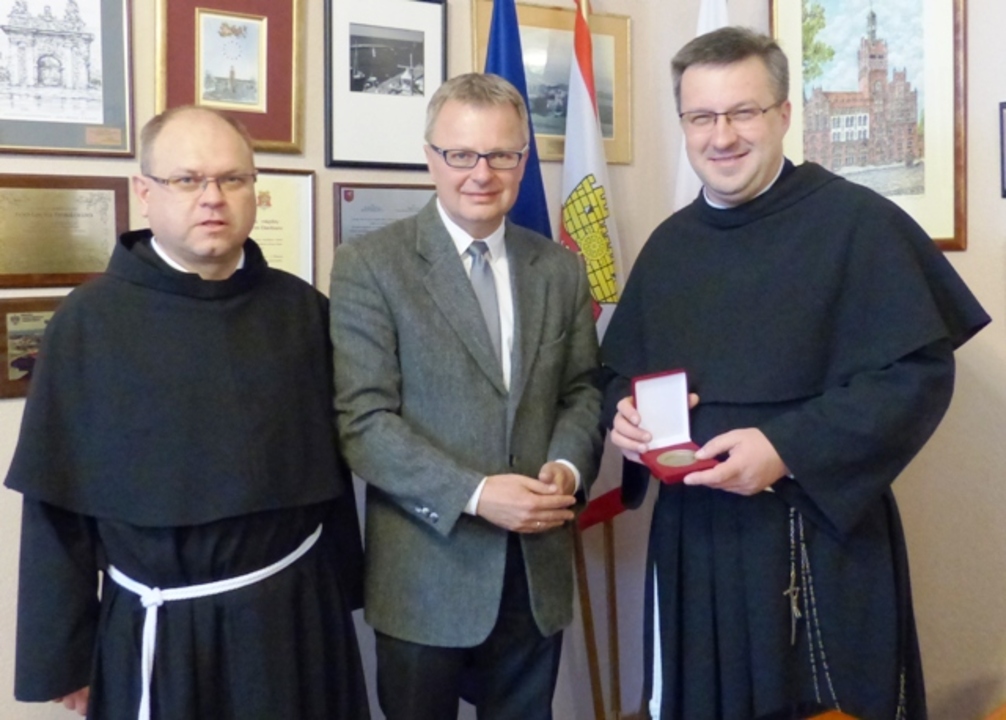 Z wizytą kurtuazyjną do Arkadiusza Klimowicza burmistrza Darłowa 4 maja 2015 przybył o. Jan Maciejowski - Prowincjał Braci Mniejszych Konwentualnych Prowincji Św. Maksymiliana w Gdańsku. Towarzyszył mu proboszcz Parafii Matki Bożej Częstochowskiej o Stanisław Piankowski. Franciszkanie od 70. lat dają posługę kapłańską mieszkańcom Darłowa. Z tej okazji burmistrz Darłowa wręczył Prowincjałowi medal siedemdziesięciolecia polskiego Darłowa.