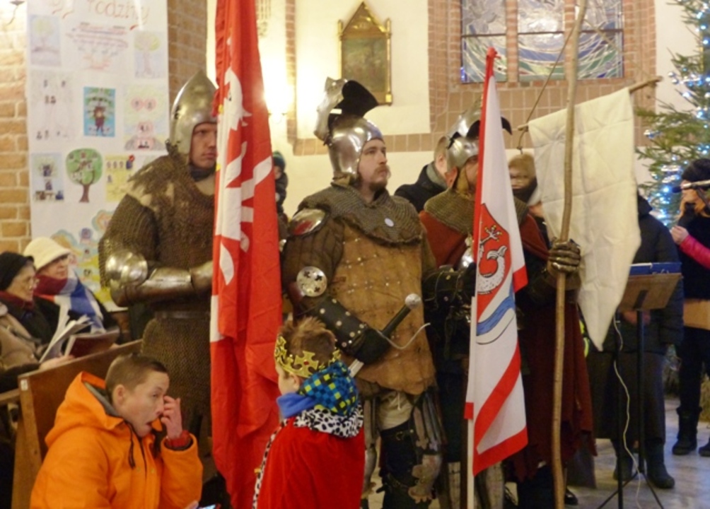 Na dziedziniec zamku króla Eryka z trzech stron świata dotarli Trzej Królowie: Kacper, Melchior i Baltazar z orszakami. W murach zamku powitał ich Eryk Pomorski czwarty król i burmistrz Darłowa - Arkadiusz Klimowicz. Na dziedzińcu zamkowym lśniło od koron, bereł, gwiazd i chorągwi. Czterej królowie na koniach wraz z orszakiem przedefilowali przez miasto z rezydencji królewskiej Eryka ulicami: Zamkowa - Podzamcze - Powstańców Warszawskich - Rynek, Plac T. Kościuszki– Kościelna –Wenedów - Kościół Mariacki. Warto wiedzieć, że w roku 2016 mija 620 lat jak Eryk Pomorski z urodzenia darłowiak został władcą Skandynawii. Królewskiemu orszakowi towarzyszyły tłumy mieszkańców. Królowie pokłonili się przed żłóbkiem i złożyli nowonarodzonemu Jezusowi Chrystusowi dary: złoto, kadzidło i mirrę. Dalej śpiewano kolędy i pastorałki przed kościelnym ołtarzem. W Czterech Króli wcielili się: o. Piotr, Arkadiusz Sip, Wojciech Polakowski i Bronisław Nowak, któremu towarzyszyło zaprzyjaźnione Bractwo Rycerskie ziemi słupskiej. Przybyłych Magów serdecznie powitał proboszcz parafii MB Częstochowskiej o. Stanisław Piankowski. W imieniu górali okolicznościową śpiewką witał władców O. Sebastian. Kolędy po białorusku śpiewał O. Paweł z Grodna, a w jednej wtórował mu O. Damian. Chór kościelny wspólnie z licznie przybyłymi mieszkańcami śpiewali kolędy i weselili się z tego niecodziennego święta. Organizatorami uroczystości byli: Miasto Darłowo, Zamek Książąt Pomorskich - Muzeum w Darłowie i parafia MB Częstochowskiej.