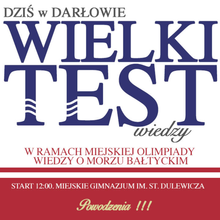 Dziś w samo południe, w siedzibie Miejskiego Gimnazjum im. St. Dulewicza uczniowie darłowskich szkół przystąpią do wielkiego testu wiedzy w ramach organizowanej przez Miasto Darłowo - Miejskiej Olimpiady Wiedzy o Morzu Bałtyckim. Uczniowie przystępujący do testu, zostali wyłonieni w ramach pierwszego - szkolnego etapu Olimpiady. Każdy z nich startuje indywidualnie i walczy o tytuł Olimpijczyka.
