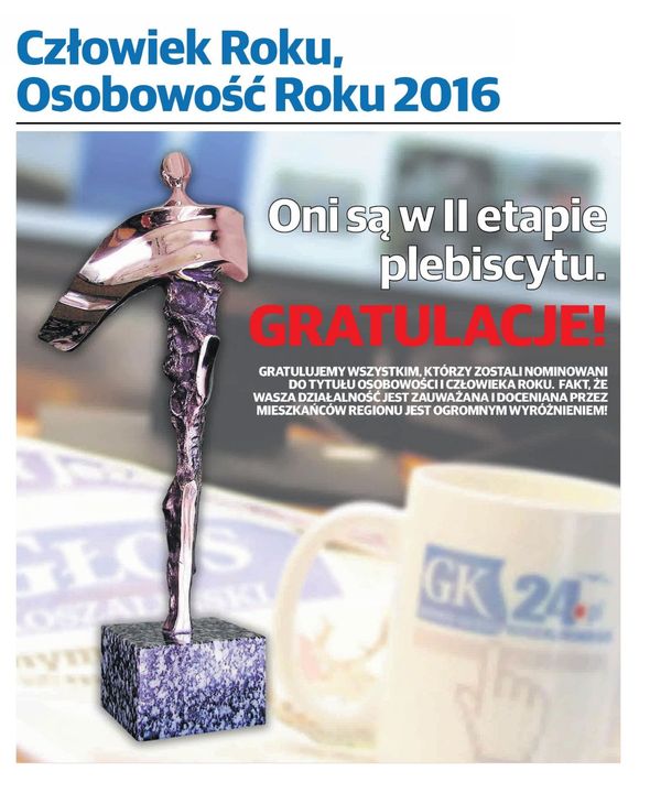 Spośród wszystkich uczestników drugiego etapu, kapituła konkursu zdecyduje, kto zdobędzie tytuł Człowieka Roku 2016. To oznacza, że jedna z osób, jeden z niezwykłych mieszkańców regionu, będzie mógł się już wkrótce pochwalić pierwszym w historii tytułem Człowieka Roku redakcji „Głosu Koszalińskiego"!