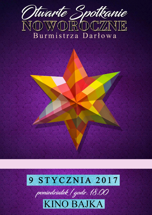 Arkadiusz Klimowicz - Burmistrz Darłowa zaprasza mieszkańców Darłowa na otwarte samorządowe SPOTKANIE NOWOROCZNE. W tym roku odbędzie się ono 9 stycznia 2017 roku (poniedziałek) – godz. 18:00 w odremontowanym budynku Kina Bajka, (Darłowo – ul. Morska 56).