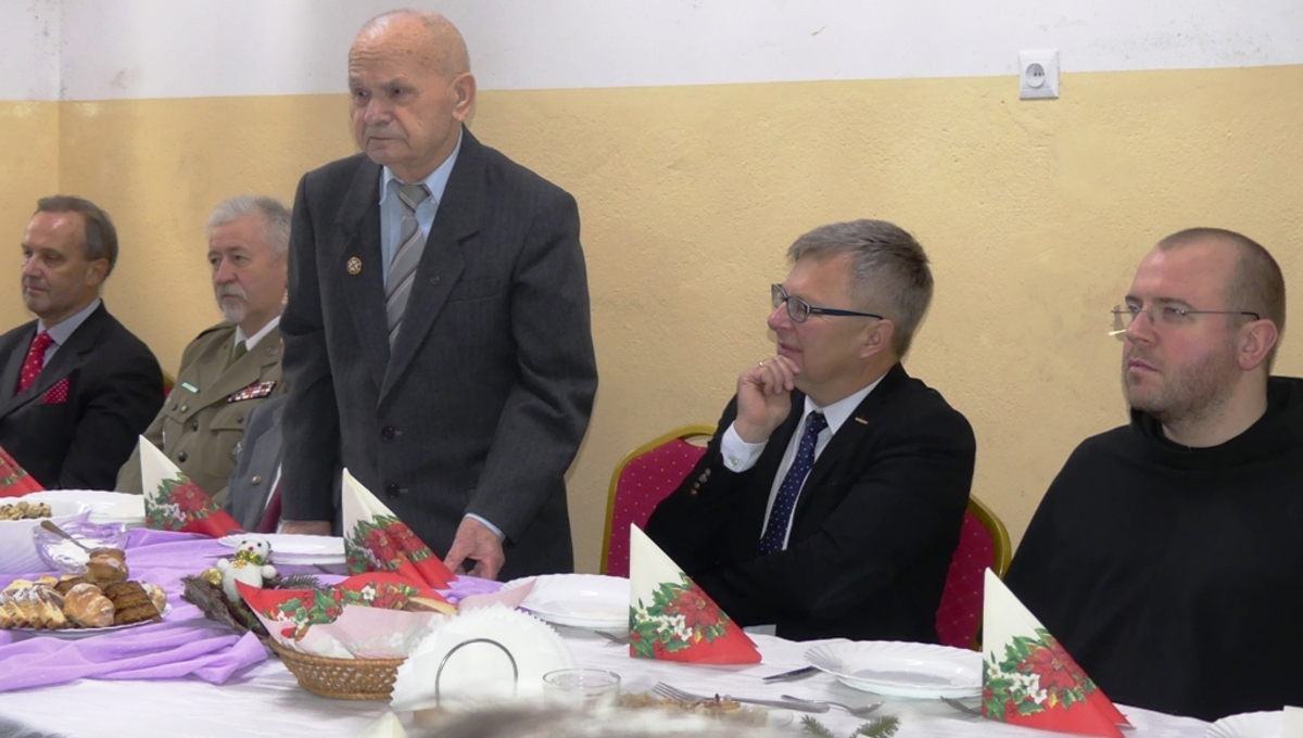 Oprócz licznie przybyłych członków i sympatyków tych związków i organizacji swoją obecnością zaszczycili opłatek: Arkadiusz Klimowicz-burmistrz Darłowa, Radosław Głażewski -wójt gminy Darłowo, franciszkanin -o Karol Wesołowski, Kazimierz Kuligowski - prezes ZKRP i BWP oraz szef PKPS, przewodniczący Polskiego Związku Niewidomych – Włodzimierz Balcerzak, który poprowadził całą uroczystość. Głos zabrali: burmistrz, wójt i franciszkanin. Życzyli oni wszystkim przybyłym i ich rodzinom zdrowia, szczęścia, dużo radości i pomyślności w Nowym Roku 2018. Stół wigilijny udekorowany gałązkami świerku i zapalonymi świecami uginał się od postnych potraw. Były tam śledzie marynowane dwojakiego rodzaju, pierogi z kapustą, kluski z makiem i rodzynkami, kapusta z grochem, czerwony barszczyk,chleb, ziemniaki a także pyszne ciasta, kawa i herbata. Śpiewano kolędy, przy akompaniamencie Jana Schwarzlose i jego akordeonu, łamano się opłatkiem i składano życzenia. Pani Maria Tyzo -Kwiecińska z PZN napisała i odczytała specjalnie napisany na tę okoliczność wiersz: