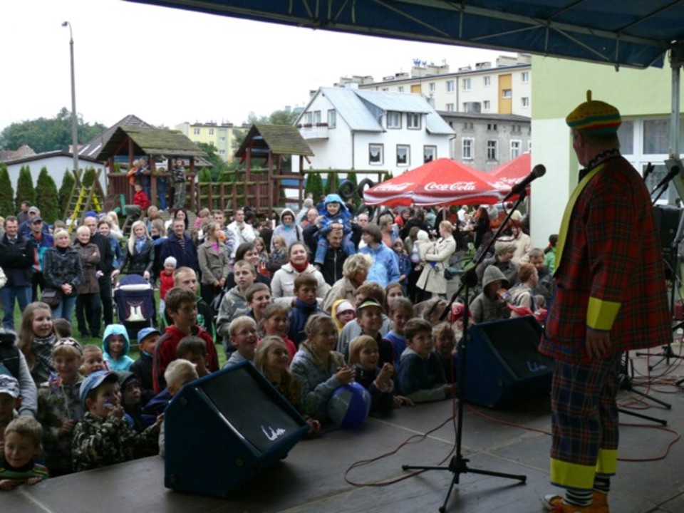Przybyłe na piknik rodziny z dziećmi bawiły się i zajadały potrawy z grilla, grochówkę, bigos, chleb ze smalcem i ogórkiem, pączki i słodycze. Dzieci ochoczo korzystały z urządzeń zabawowych oraz pompowanych zjeżdżalni. Akrobaci, żonglerzy, szczudlarz i clown zachęcali dzieci do zabaw, tańców i ekwilibrystyki. Uśmiechom nie było końca. Miejska Biblioteka prowadziła szereg konkursów z nagrodami.