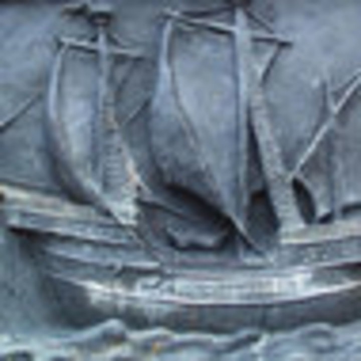 Relief od północy pokazuje robotników portowych zajętych załadunkiem tarcicy na zacumowany do polera dwumasztowy żaglowiec. W dali widać mieszczańskie kamieniczki.