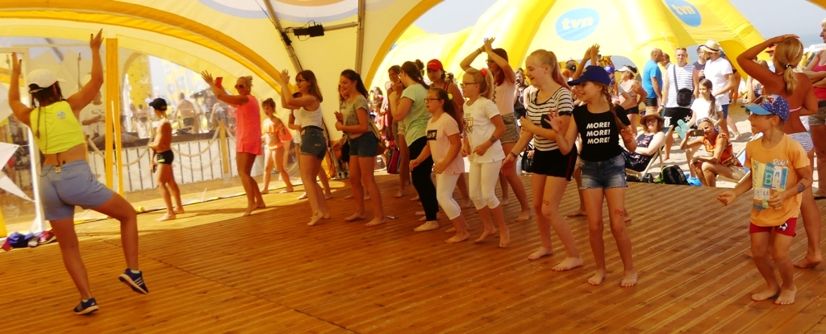 Zarówno najmłodsi, jak i dorośli bawili się w ogródkach zabaw. Pod okiem animatorów: spalano kalorie na stacjonarnych rowerach, rzucano do celu, wchodzono na nadmuchiwaną ścianę wspinaczkową, próbowano swoich sił w sportach wodnych takich jak pływanie na desce SUP czy skakanie na trampolinie wodnej, albo na zjeżdżalni wodnej, czy bananem po morzu. Uczono także najmłodszych udzielania pierwszej pomocy. Kochający aktywny wypoczynek ćwiczyli kroki i figury Zumby lub grali w siatkówkę plażową. Co pewien czas odbywały się spotkania z gwiazdami jak np.: z Olivierem Janiakiem i prowadzącym program Google Box Janem Pirowskim, czy aktorem telewizyjnym i filmowym Przemysławem Cypryańskim. Blado wypadło spotkanie z kiczowato wyglądającą Dagmarą Kaźmierską obwieszoną świecidełkami jak choinka. Po każdym spotkaniu był czas na selfie i autografy. Niektóre relacje były transmitowane na antenie TVN. Na terenie miasteczka widziano również Lidię Kopanię. Ponadto śpiewał młody wokalista– Szymon Chodyniecki, a duet Oli Borkowskiej i Artura Kuriaty dał show niczym w programie – Po prostu tańcz”. To była dobra rozgrzewka przed występem Marty Podulki – uczestniczki programów „Mam Talent!” i „X Factor”.