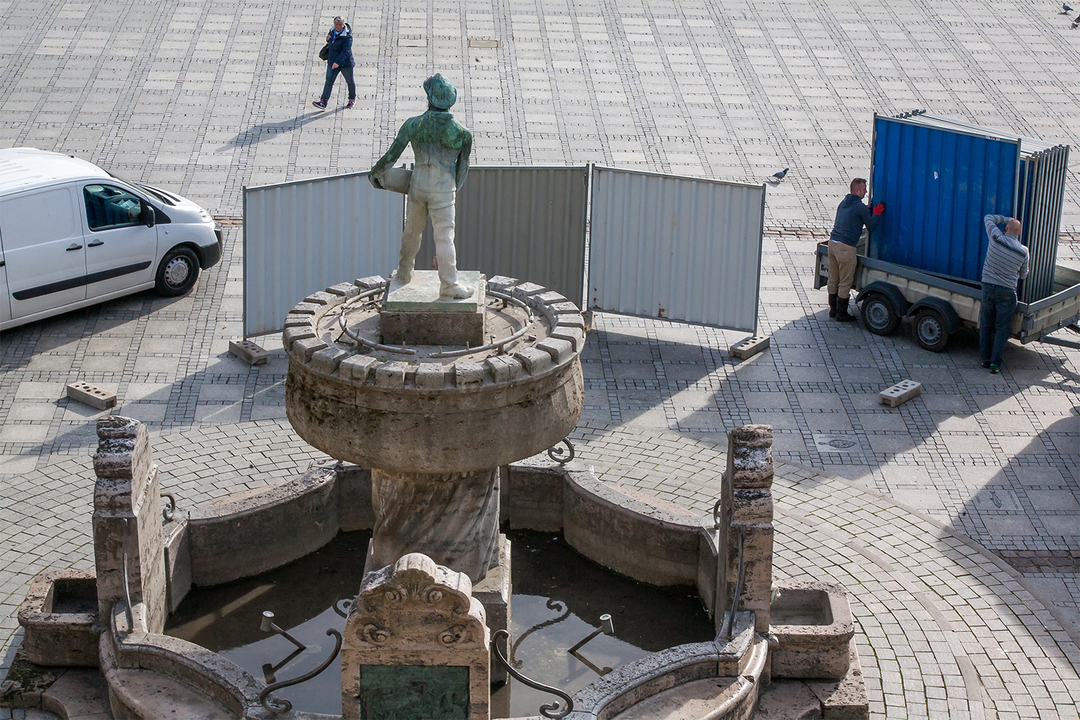 Zakres prac konserwatorskich przewiduje prace przy trawertynie: renowację betonu, spoinowanie oraz hydroizolację niecki betonowej wypełnionej wodą i pozostałych niecek. Ponadto prace przy elementach dekoracyjnych tj. rzeźby Rybaka, płaskorzeźb z brązu przedstawiających fragmenty historii Miasta Darłowa. Dodatkowo sprawdzona zostanie drożność i funkcjonalność systemu nawadniającego oraz prawidłowość ukierunkowania wody.