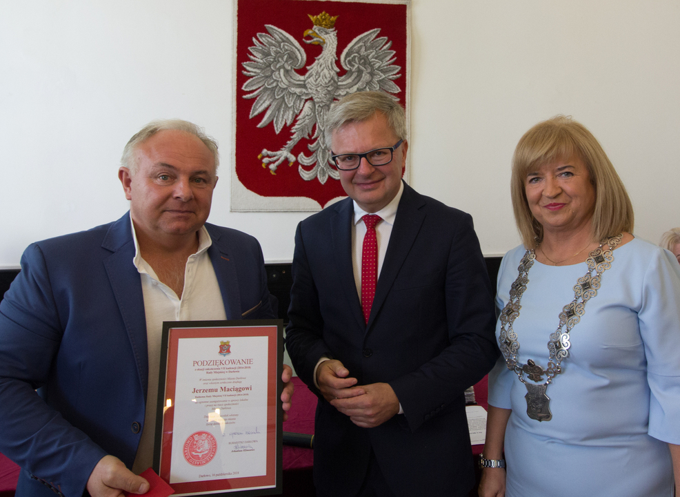 Arkadiusz Klimowicz - Burmistrz Darłowa Darłowo, 16 października 2018 Równocześnie z podziękowaniami Arkadiusz Klimowicz uhonorował wszystkich Radnych medalami wybitymi w roku 2018 z okazji 400-lecia nadania miastu Darłowo praw menniczych.