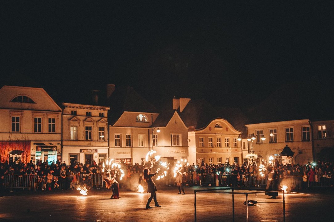 To było gorące show ! W środę 31 października darłowski Plac Tadeusza Kościuszki wypełnił się po brzegi licznie zgromadzoną publiką. To wszystko za sprawą pokazu żywego ognia w ramach wydarzenia Darłowo FIRE SHOW 2018. Kuglarska sztuka w wykonaniu koszalińskich artystów z grup Incendi oraz Jumpfire zgromadziła ponad tysiąc mieszkańców. W dwudziestotrzyminutowym pokazie zatytułowanem "Leśne licho" mogliśmy zobaczyć niezwykłą "płonącą" choreografię. - To już trzecia edycja. Frekwencja na widowni pokazała, że darłowiacy lubią takie pokazy. Po uśmiechach na twarzach i gromkich oklaskach upewniłem się tylko, że warto to kontynuować. Może nawet powinniśmy robić to częściej. - mówi Daniel Bonzay Frącz z ramienia Rap Piwnicy (pomysłodawca i współorganizator imprezy). Dziękuję Miastu Darłowo za możliwość organizacji tego show. Ze swojej strony dodam, że postanowiliśmy tą sztuką podsumować miesięczną zbiórkę na rzecz naszej chorej mieszkani Kingi Bartkowiak. To był taki nasz wspólny finał akcji. Dodajmy, że udało się uzbierać do tej pory ponad 78 000 zł. To prawie 30 tysięcy więcej niż to zastało założone. Dziękujemy.
