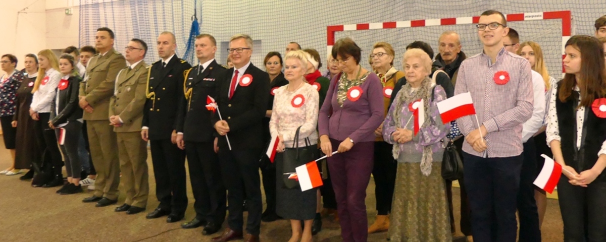 Po odśpiewaniu hymnu dyrektorka Zespołu Szkół Joanna Witkowska wręczyła dyplomy dla najlepszych klas biorących udział w konkursie wiedzy o Odzyskaniu Niepodległości przez Polskę. Na zakończenie uroczystości młodzież i dzieci zatańczyły Poloneza.