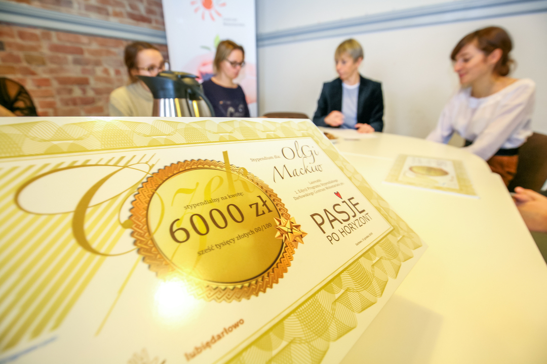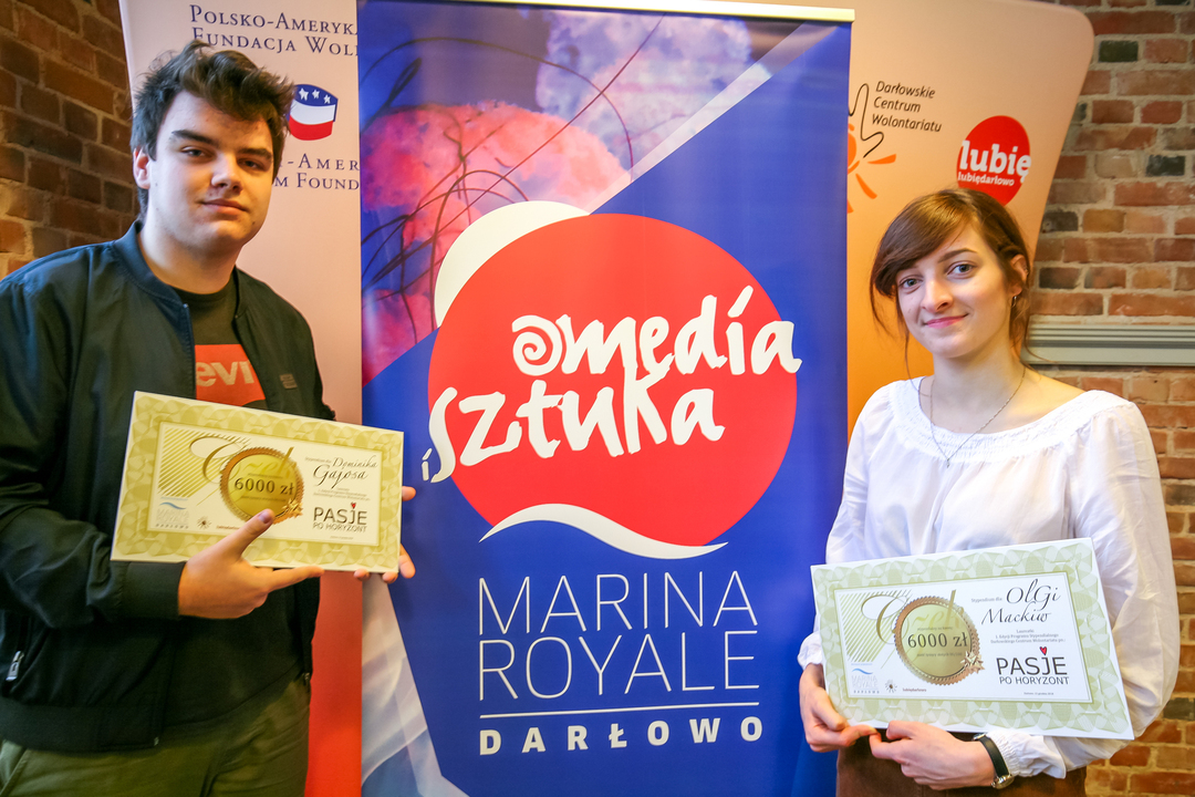 W minioną sobotę (15 grudnia 2018) w siedzibie Darłowskiego Centrum Wolontariatu stypendystom 1. Edycji Programu Stypendialnego Pasje po Horyzont wręczono czeki na kwotę 6000 zł. Otrzymali je: Olga Mackiw i Dominik Gajos.
