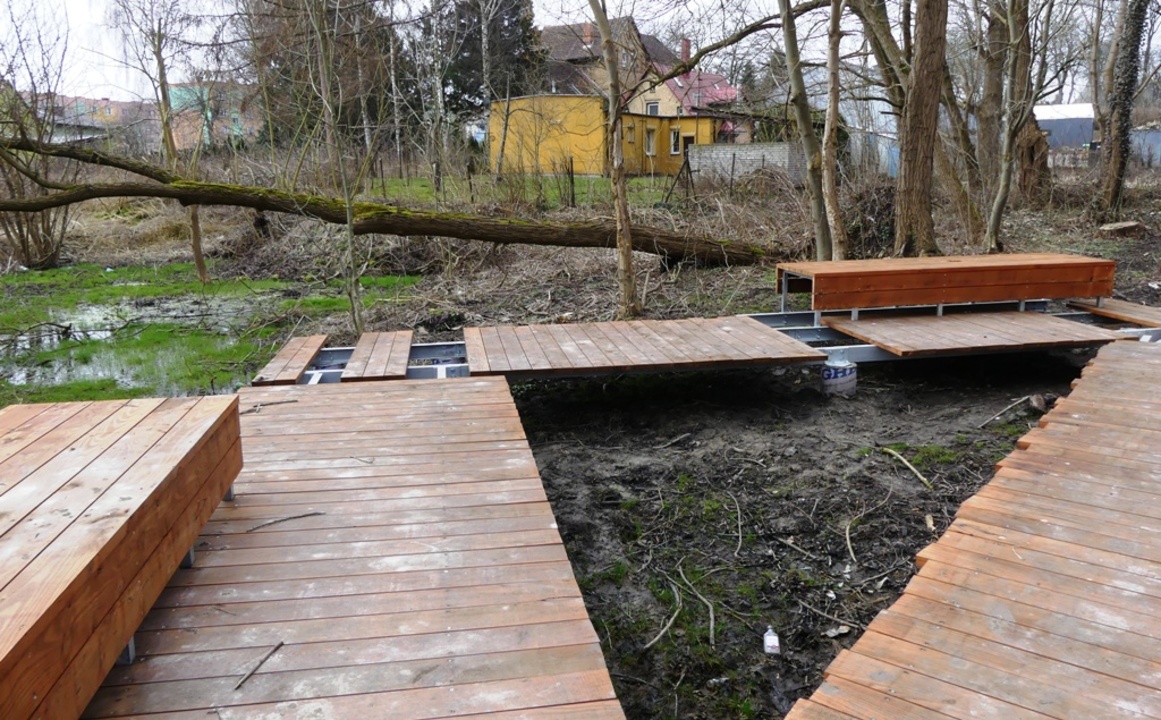 Trwają prace polegające na budowie nowego parku w Darłowie przy ulicy Świętej Gertrudy. Usunięto już krzaki z miejsc otaczających basen z wodą, wytyczono główną alejkę, wybudowano betonowe schody oraz wykonano drewnianą kładkę dla pieszych wraz z miejscami do odpoczynku. Ponadto położono instalację elektryczną pod lampy oświetlające park. Ta inwestycja związana z projektem ,,Zielone Darłowo tworzenie nowych oraz odnowa zdegradowanych terenów zielonych na obszarze Miasta Darłowa w celu poprawy jakości środowiska dla mieszkańców i turystów.” Projekt jest dofinansowany ze środków unijnych. Zakończenie prac zaplanowano do września 2019 roku.