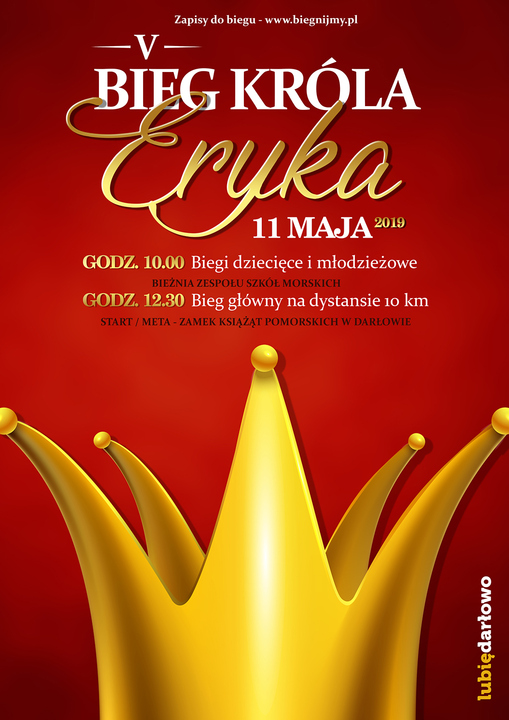Miasto Darłowo zaprasza na 5. BIEG KRÓLA ERYKA. Bieg główny na dystansie 10 km. Rozpocznie się o godz. 12:30. Trasa: