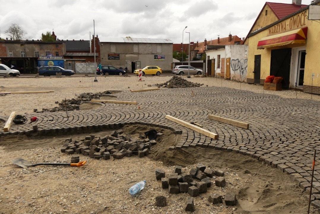 Do tej pory na terenie miejskiego targowiska przy ulicy Stodolnianej wykonano takie prace jak np: zerwano starą pofałdowaną nawierzchnię, wzmocniono i wyrównano podłoże, położono nową instalację wodno- kanalizacyjną z przyłączami i kanalizację deszczową. Ponadto zbudowano instalację elektryczną niskiego napięcia i wykonano oświetlenia targowiska. Obecnie kładziona jest nowa nawierzchnia z kostki granitowej. Osobno wykonywane są bardziej funkcjonalne stalowe zadaszone stoły dla handlujących. W ramach przebudowy planuje się również zagospodarowanie terenu sąsiadującego z placem, na parking. Termin zakończenia prac planowany jest na koniec czerwca br. Koszt prac został wyceniony na kwotę 1,1 mln złotych. Dotacja ma wynieść połowę kosztów i będzie pochodzić z Programu Rozwoju Obszarów Wiejskich na lata 2014 - 2020.