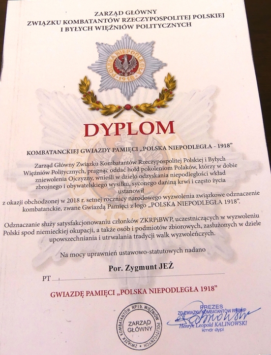 Darłowscy kombatanci uhonorowani Gwiazdami Pamięci Polska Niepodległa