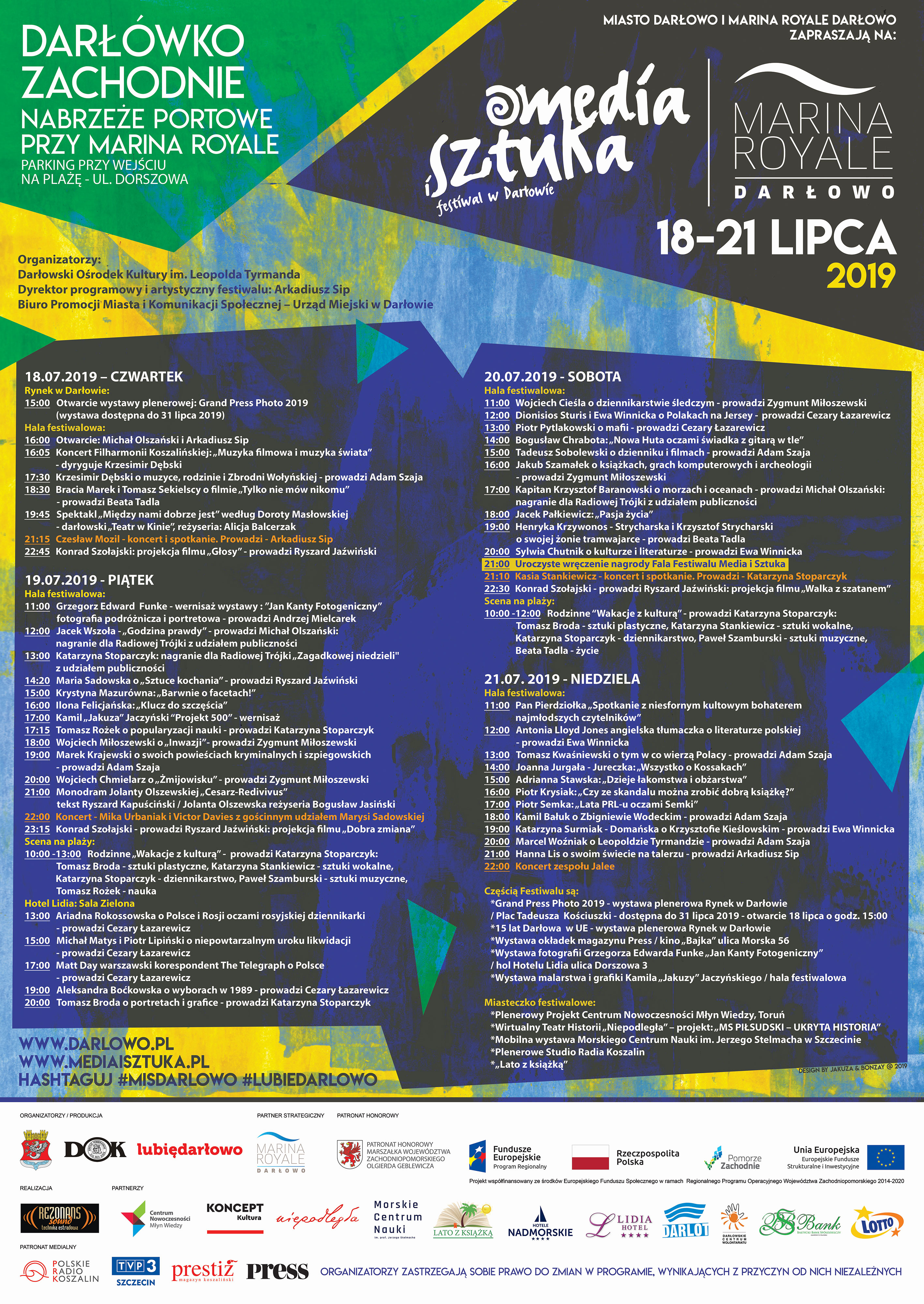 Zapraszamy na 9. Media i Sztuka – Festiwal w Darłowie / 18-21 lipca 2019 roku / Parking przy wejściu na plażę – ul. Dorszowa.