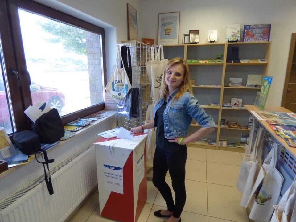 Na zdjęciu: Pani Monika głosuje w Terminalu Pasażerskim