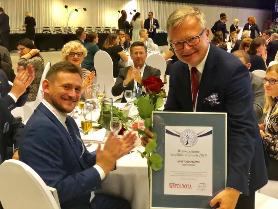 Na XVII Samorządowym Forum Kapitału i Finansów, jakie miało miejsce w Międzynarodowym Centrum Kongresowym w Katowicach 3 października 2019 roku darłowski samorząd otrzymał specjalne wyróżnienie. Miasto Darłowo w rankingu Pisma Samorządu Terytorialnego „Wspólnota”, podsumowującym wydatki inwestycyjne samorządów w latach 20016 – 2018 w kategorii małych miast Darłowo zajęło 3 miejsce pod względem wykorzystania funduszy Unii Europejskiej! Wyróżnienie odebrał Arkadiusz Klimowicz burmistrz miasta Darłowa. W kategorii gmin wiejskich wyróżnienie otrzymała również Gmina Postomino. Gratulujemy wspaniałych dokonań!