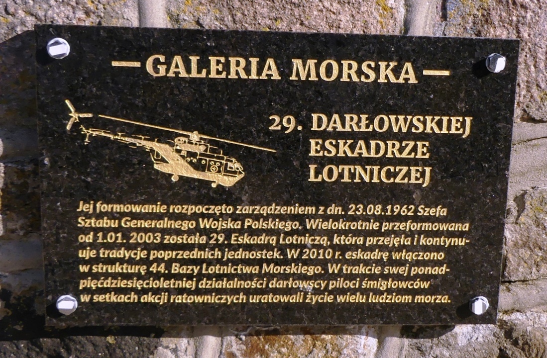 · 29. Darłowskiej Eskadrze Lotniczej. Jej formowanie rozpoczęto zarządzeniem z dn. 23.08.1962 Szefa Sztabu Generalnego Wojska Polskiego. Wielokrotnie przeformowana od 1.01.2003 została 29. Eskadrą lotniczą, która przejęła i kontynuuje tradycje poprzednich jednostek. W 2010 r. eskadrę włączono w strukturę 44. Bazy Lotnictwa Morskiego. W trakcie swej ponad pięćdziesięcioletniej działalności darłowscy piloci śmigłowców w setkach akcji ratowniczych uratowali życie wielu ludziom morza.
