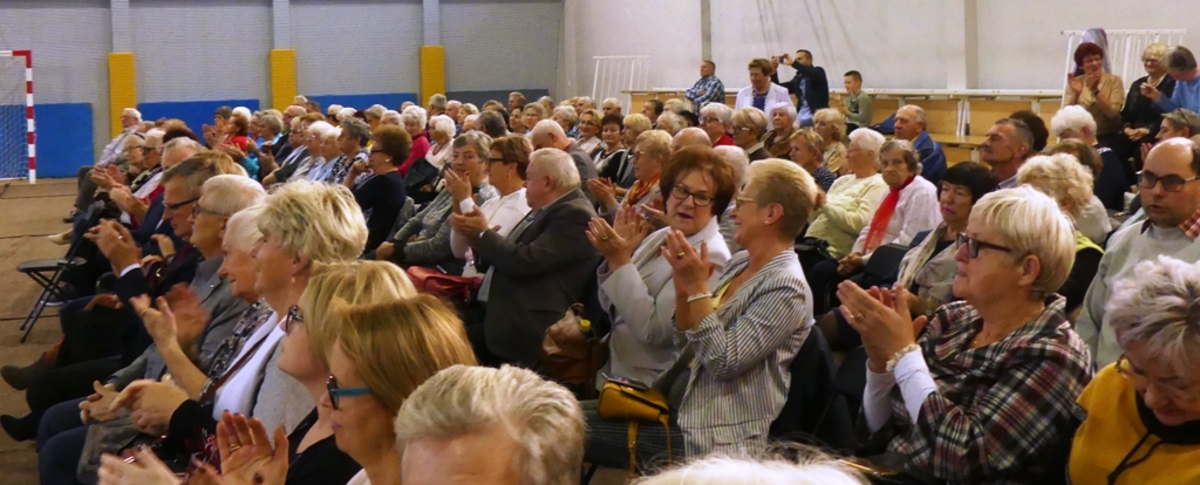 Ponad 300 seniorów z Darłowa w sali sportowej Zespołu Szkół im. Stefana Żeromskiego wzięło udział 24 października 2019 r. w uroczystych obchodach Miejskiego Dnia Seniora.