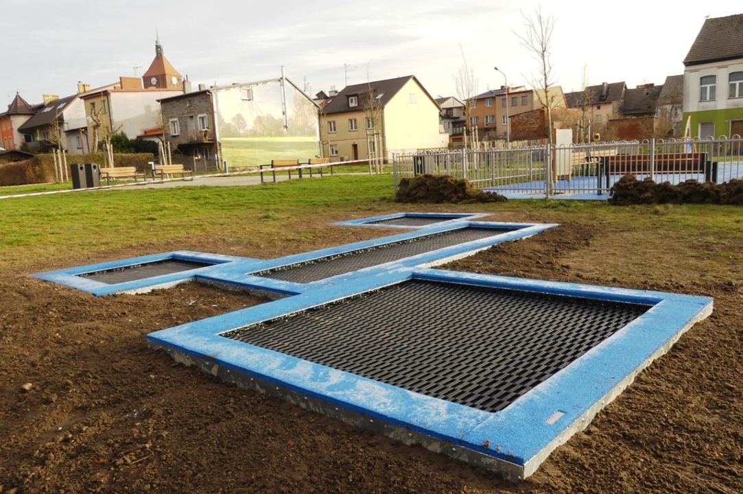 Zamontowano na placu zabaw cztery trampoliny Zamontowano na placu zabaw cztery trampoliny